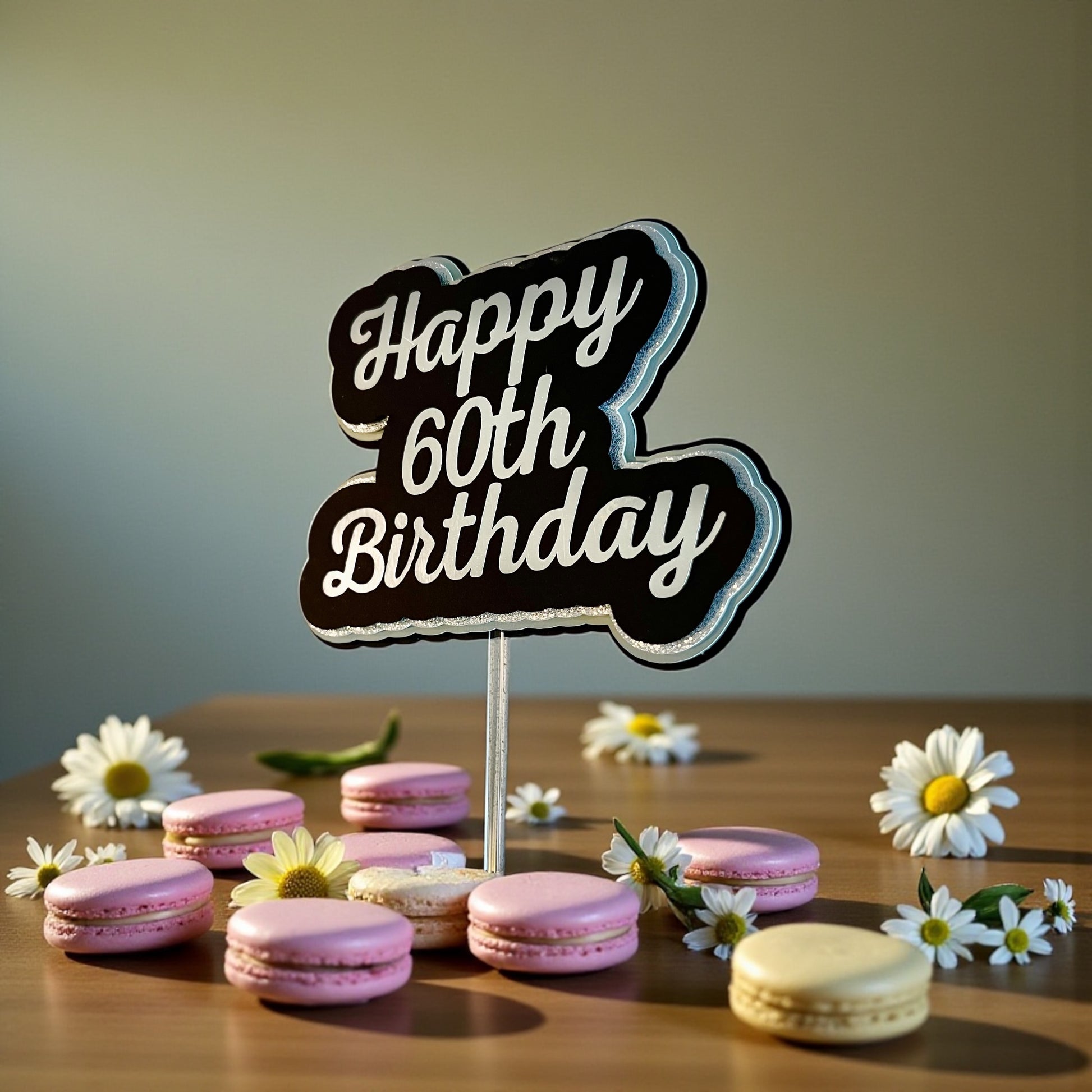 Elevate your birthday celebration with this striking 3D cake topper, expertly crafted from premium glitter and matte cardstock. Personalize it with the celebrant's year to create a memorable centerpiece that captures the occasion. The dimensional design adds visual depth and sophistication to any cake, while the quality materials ensure durability throughout your event. A thoughtful finishing touch that transforms an ordinary dessert into a custom-designed statement piece.