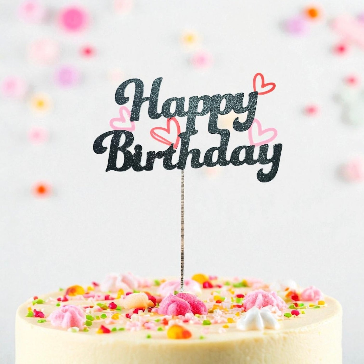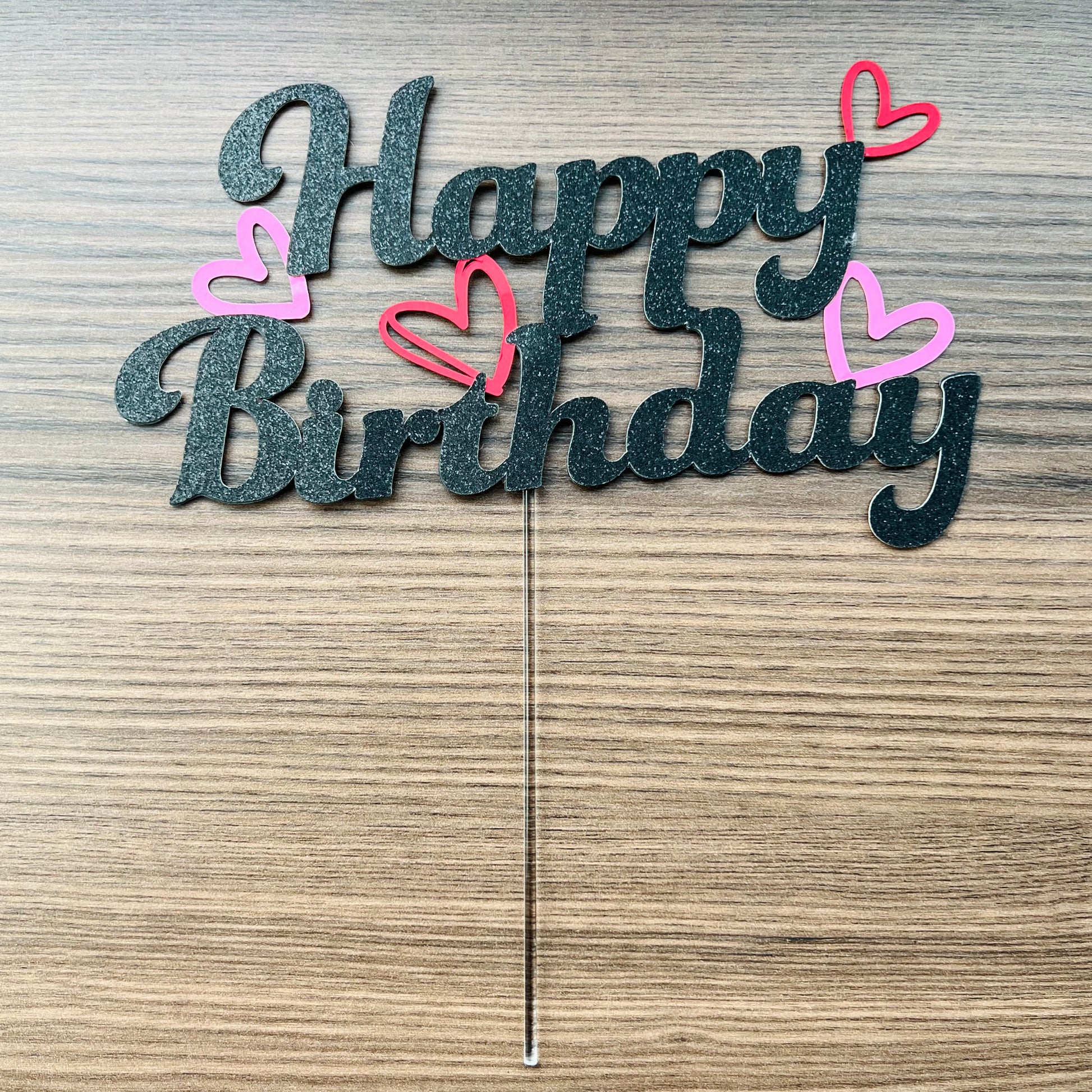 This elegant "Happy Birthday" cake topper is crafted from premium glitter cardstock, blending durability with a striking visual appeal. Its refined design adds a sophisticated touch to any celebration, making your cake a memorable centre piece. Expertly made to ensure both quality and style, it offers a unique way to enhance your birthday decor.