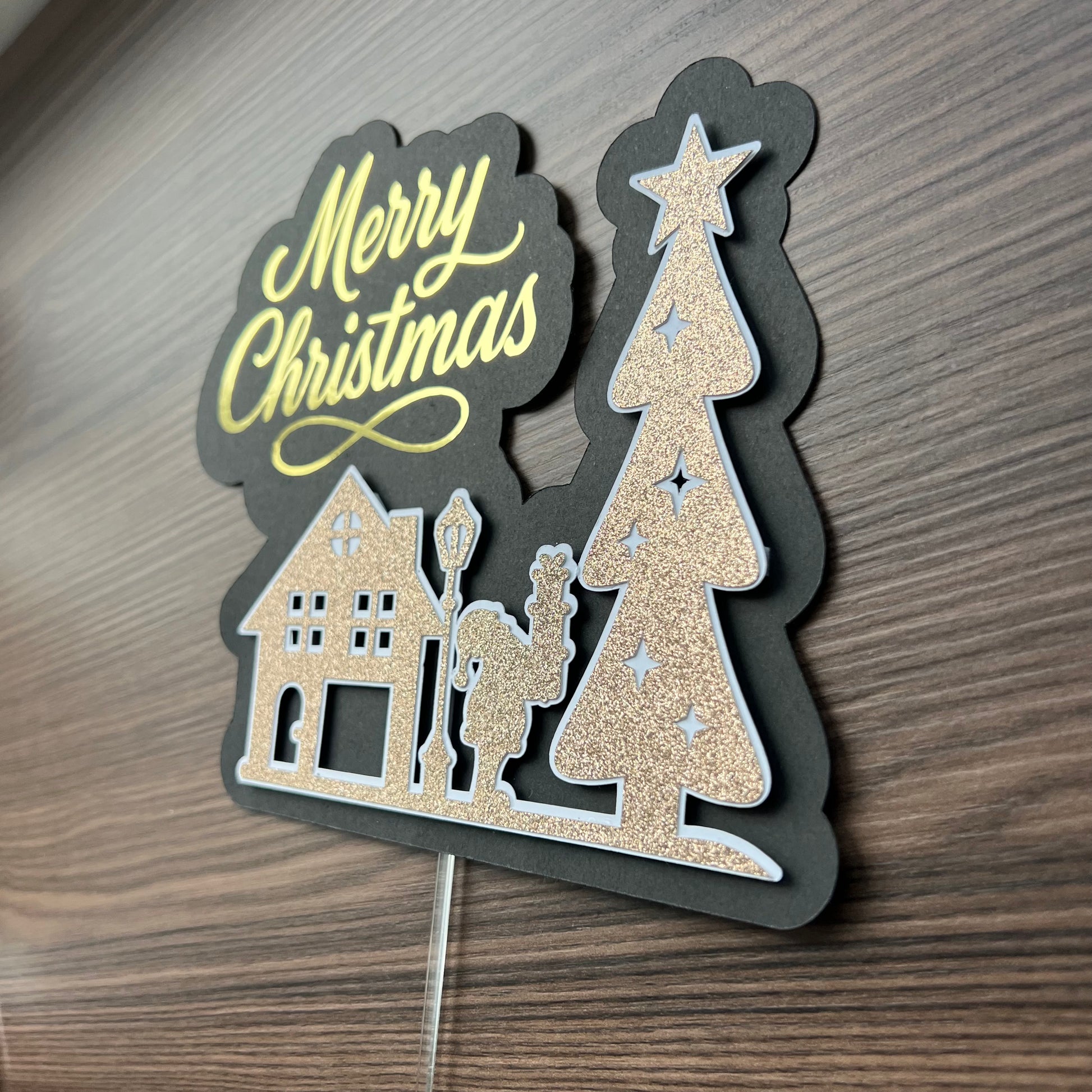 Elevate your holiday dessert with this expertly crafted Merry Christmas cake-topper. Precision-cut from premium cardstock, it delivers a polished, festive accent that complements any cake design. The durable material ensures crisp edges and lasting quality throughout your celebration. Perfect for adding a sophisticated seasonal touch to your baking presentation.