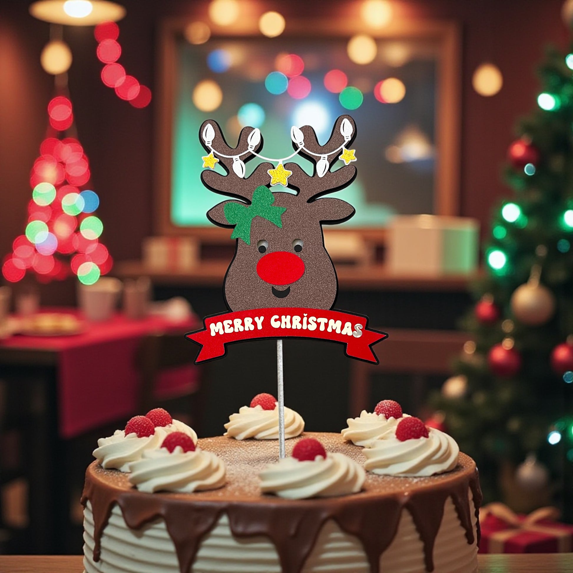 Elevate your holiday dessert with this expertly crafted Merry Christmas Rudolf cake topper. Precision-cut from premium cardstock, it delivers a polished, festive accent that complements any cake design. The durable material ensures crisp edges and lasting quality throughout your celebration. Perfect for adding a sophisticated seasonal touch to your baking presentation.